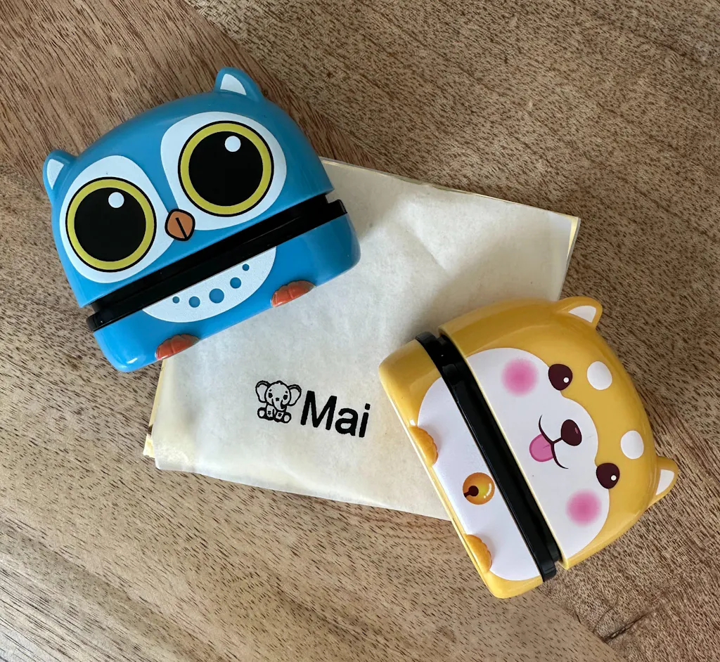 ⚠️ Upozornění: Výrobek není hračka. Je určen pouze jako organizační pomůcka. Není vhodný pro děti mladší 3 let. Inkoust razítka je odolný a při praní se z textilu nesmyje.